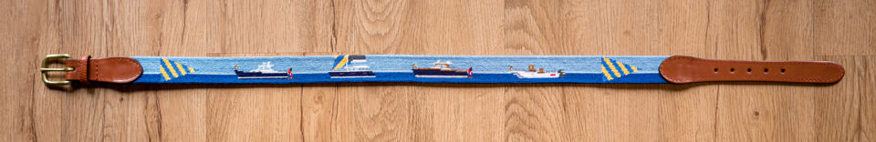 Elevate your style with a custom Smathers & Branson belt featuring the B&G Fleet. Made from the finest materials and featuring Smathers & Branson’s signature needlepoint, this custom belt is more than just an accessory—it's a statement piece that tells your story with every wear. Perfect for those who appreciate quality, tradition, and a bit of personal flair.