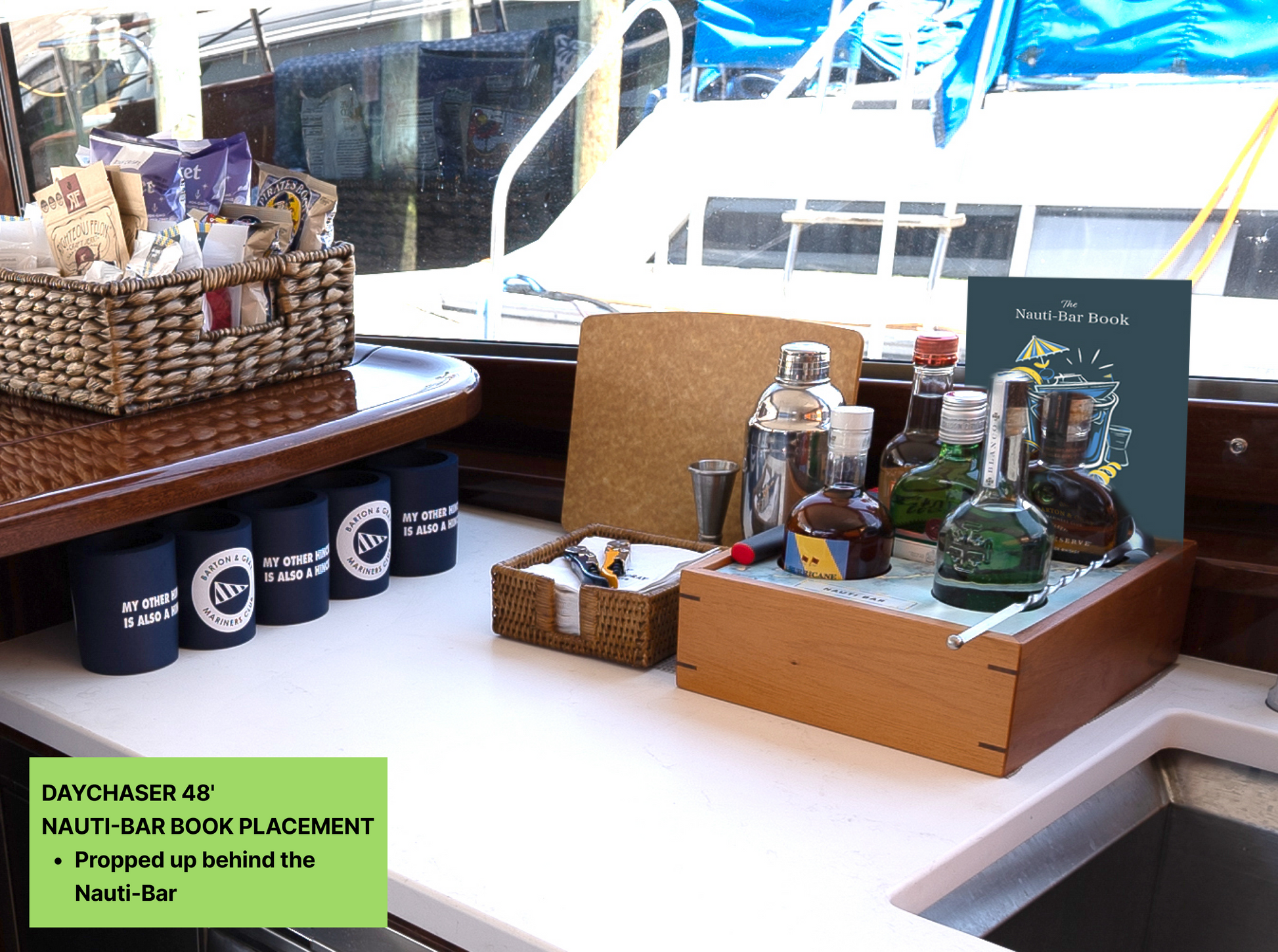 With over 25 recipes tailored to just the ingredients onboard, the Nauti-Bar Book will help you craft refreshing cocktails with the following provisions available in the B&G Galley.